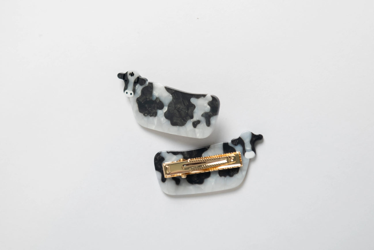 Add a touch of farm-inspired charm to your everyday look with the Cow Alligator Clip, exclusively from American Farm Company and now available at Milk & Co. Lifestyle Boutique. This adorable clip, shaped like a cow and measuring 5 cm, is crafted from high-quality cellulose acetate, offering both durability and a lightweight, comfortable hold. Proudly designed in Rural Iowa, this clip is a celebration of rustic craftsmanship and rural style. Perfect for accessorizing with a touch of farmhouse flair, this unique piece is a FINAL SALE item you won’t want to miss!