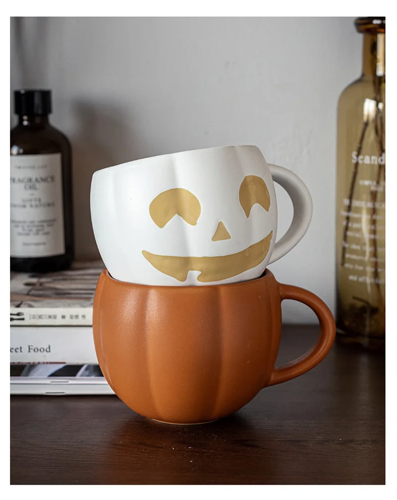 1.Cute Pumpkin Mug: Sip your hot beverages from this Halloween themed mug featuring a pumpkin shape design. It's perfect to add a festive touch to your drinkware collection. Available in two options: orange or white to suit your mood.