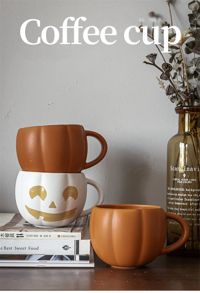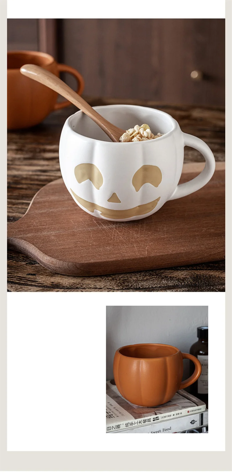 Cute Funny Pumpkin Ceramic Mug Halloween Themed Ghost Devil Retro Enamel Handle Cups Milk Coffee Mug Fall Mugs Water cup