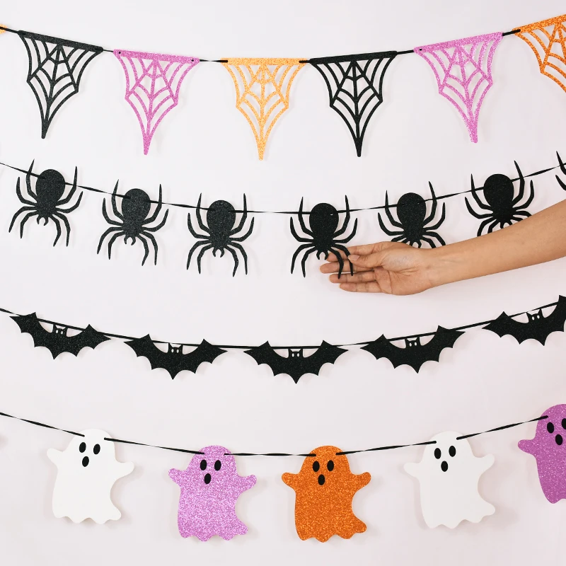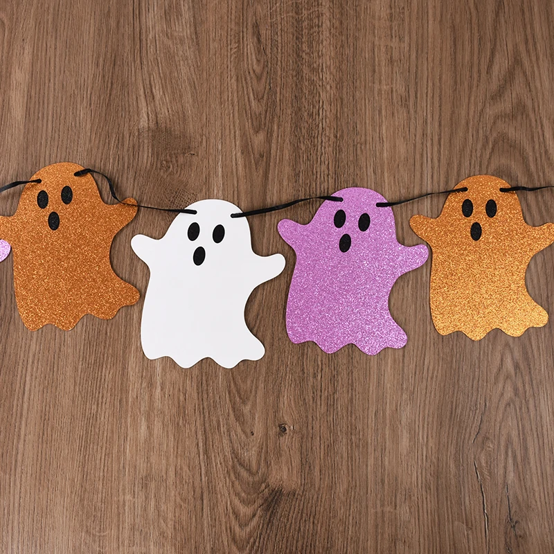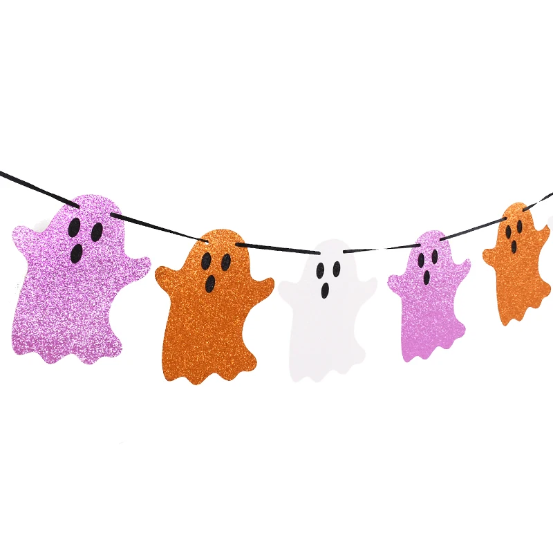 Halloween Party Banner Garlands Cartoon Ghost Bat Spider Hanging Bunting for Halloween Home Decoration Supplies Kids Favors Gift