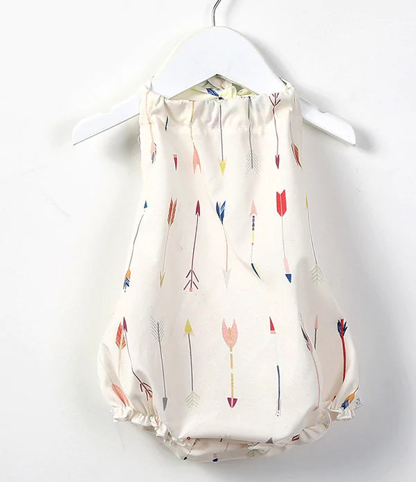 Capture the essence of sunny days with the Arrow Halter Romper. Its playful arrow pattern and stylish halter neckline make it a seasonal favorite, adding a touch of whimsy and sophistication to your summer wardrobe.