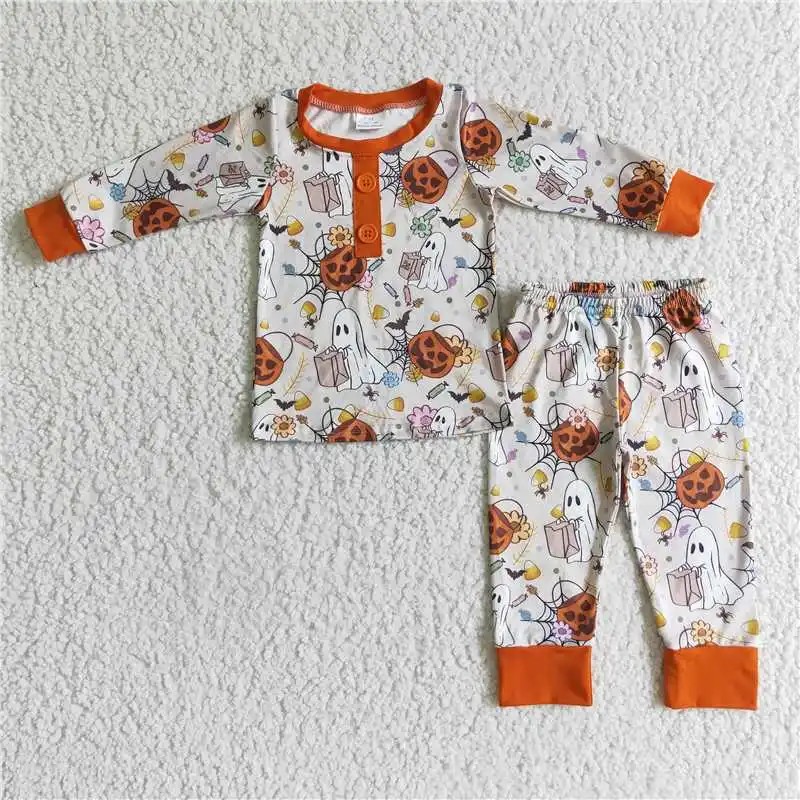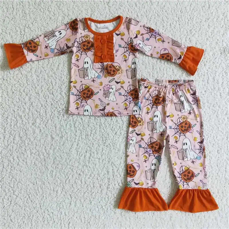 Kids Halloween Pumpkin Girl Horror Nightwear Children Ghost Candy Long Sleeve Set Flower Pants Wholesale Outfit Toddler Pajamas