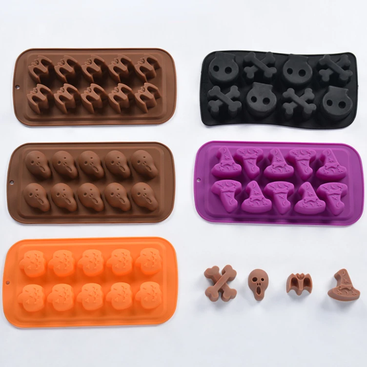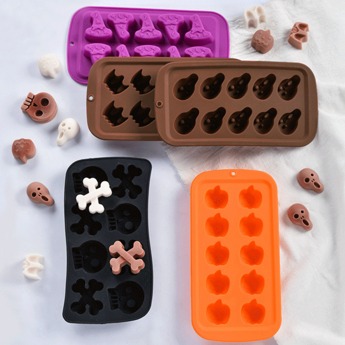 Multicavity Pumpkin Ghost Silicone Chocolate Mold DIY Bat Witch Hat Candy Biscuit Making Baking Mould Halloween Party Cake Decor