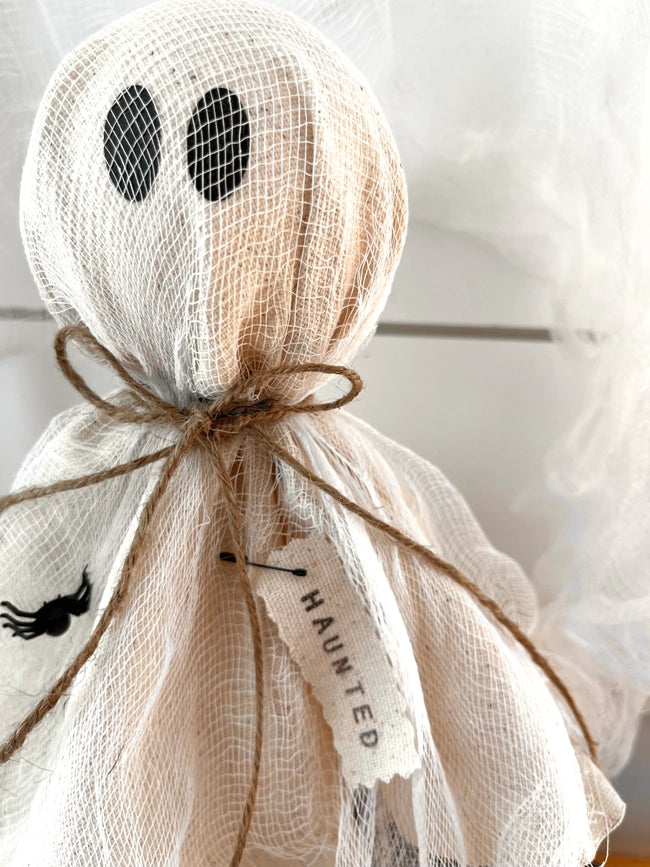 Each ghost features layers of cheesecloth draped over natural cotton for a dimensional, rustic look. The x-large ghost has an extended drape, offering more styling possibilities. Customize their appearance by fluffing the layers for a fuller look or leaving them as is for a more simplistic vibe.